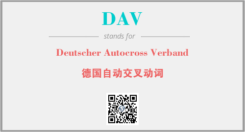 上述内容是“Deutscher Autocross Verband”作为“DAV”的缩写,解释为“德国自动交叉动词”时的信息,以及英文缩略词DAV所代表的英文单词,其对应的中文拼音、详细解释以及在英文中的流行度和相关分类、应用领域及应用示例等。