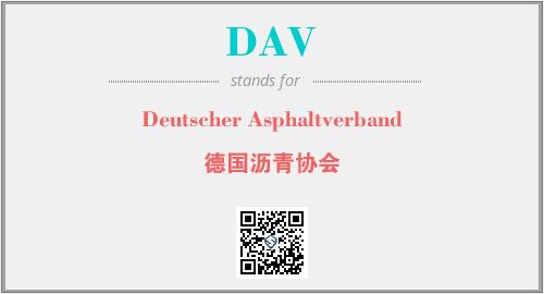 上述内容是“Deutscher Asphaltverband”作为“DAV”的缩写,解释为“德国沥青协会”时的信息,以及英文缩略词DAV所代表的英文单词,其对应的中文拼音、详细解释以及在英文中的流行度和相关分类、应用领域及应用示例等。