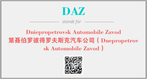 以上为Dniepropetrovsk Automobile Zavod英文缩略词DAZ的中文解释,以及该英文缩写在英语的流行度、分类和应用领域方面的信息。