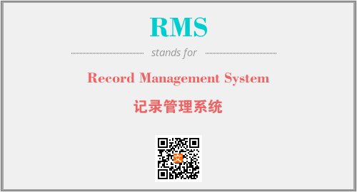 英文缩略词“RMS”经常作为“Record Management System”的英文缩写来使用,中文表示:“记录管理系统”。本文将详细介绍英文缩写词RMS所代表英文单词,其对应的中文拼音、详细解释以及在英语中的流行度。此外,还有关于缩略词RMS的分类、应用领域及相关应用示例等。