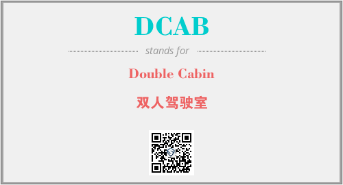 英文缩略词“DCAB”经常作为“Double Cabin”的英文缩写来使用,中文表示:“双人驾驶室”。本文将详细介绍英文缩写词DCAB所代表英文单词,其对应的中文拼音、详细解释以及在英语中的流行度。此外,还有关于缩略词DCAB的分类、应用领域及相关应用示例等。