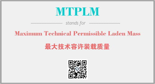上述内容是“Maximum Technical Permissible Laden Mass”作为“MTPLM”的缩写,解释为“最大技术容许装载质量”时的信息,以及英文缩略词MTPLM所代表的英文单词,其对应的中文拼音、详细解释以及在英文中的流行度和相关分类、应用领域及应用示例等。