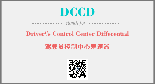 英文缩略词“DCCD”经常作为“Driver\'s Control Center Differential”的英文缩写来使用,中文表示:“驾驶员控制中心差速器”。本文将详细介绍英文缩写词DCCD所代表英文单词,其对应的中文拼音、详细解释以及在英语中的流行度。此外,还有关于缩略词DCCD的分类、应用领域及相关应用示例等。