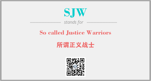 英文缩略词“SJW”经常作为“So called Justice Warriors”的英文缩写来使用,中文表示:“所谓正义战士”。本文将详细介绍英文缩写词SJW所代表英文单词,其对应的中文拼音、详细解释以及在英语中的流行度。此外,还有关于缩略词SJW的分类、应用领域及相关应用示例等。