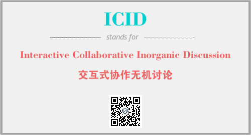 上述内容是“Interactive Collaborative Inorganic Discussion”作为“ICID”的缩写,解释为“交互式协作无机讨论”时的信息,以及英文缩略词ICID所代表的英文单词,其对应的中文拼音、详细解释以及在英文中的流行度和相关分类、应用领域及应用示例等。